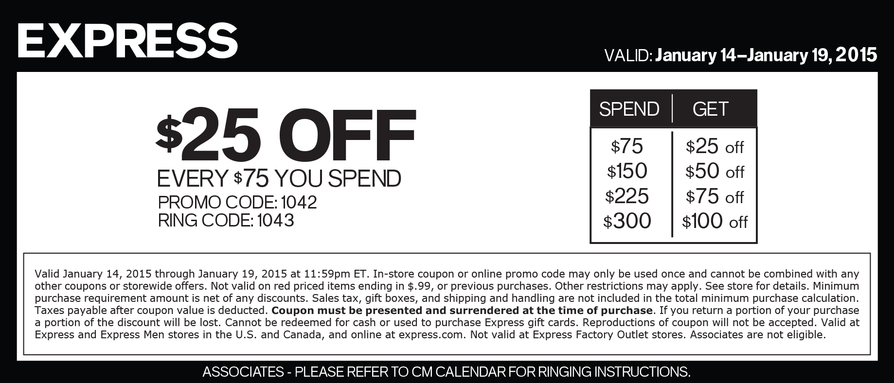 Express Coupon Code $15 Off $30 Printable