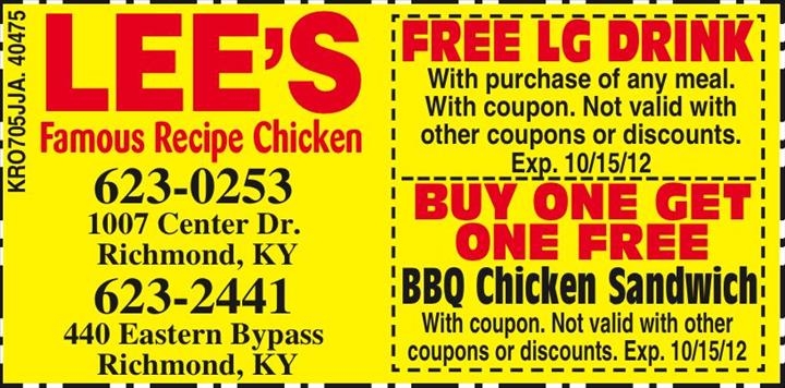 Lee’s Famous Recipe Chicken Coupons Printable
