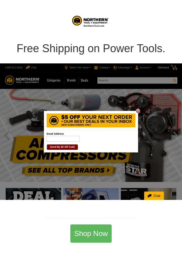 Don’t miss out on the opportunity to save money on your tool purchases. Visit Northern Tool today and start printing out those coupons for some great deals!