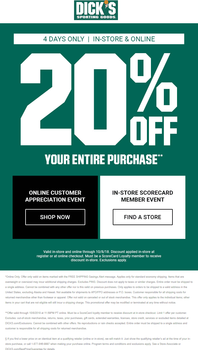 One of the best deals available is the printable Dickssportinggoods in-store coupon for $20 off a purchase of $100 or more. This is a great way to save on anything from athletic apparel to camping gear, making it easier to stock up on all the essentials for your favorite sports and outdoor activities.